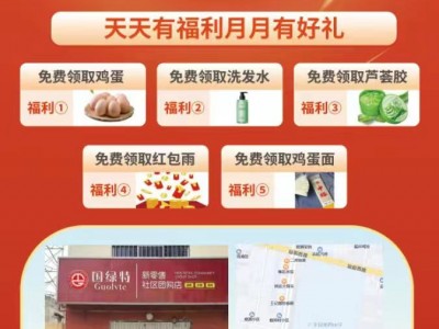 国绿特新零售社区团购店开业啦!新店开业每天优惠不断,扫码加微信,每天有福利,到店签到,每人一次,0.1元团购8个鸡蛋活动 店面地址:建新街北段路西/四中西门对面往南50米路西(国绿特)