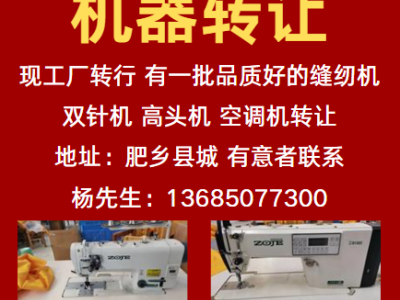 现工厂转行,有一批品质好的缝纫机,双针机,高头机,空调机转让。地址:肥乡县城 有意者联系杨先生