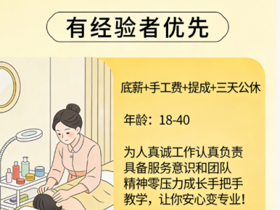 招聘美容师!有经验者优先