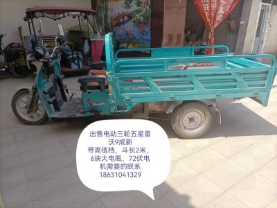 出售电动三轮五星雷沃9成新带高低档,斗长2米,6块大电瓶,72伏电机需要的联系