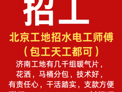 北京工地招水电工师傅(包工天工都可),济南工地有几千组暖气片,花洒,马桶分包,技术好,有责任心,干活踏实,支款方便,联系刘经理