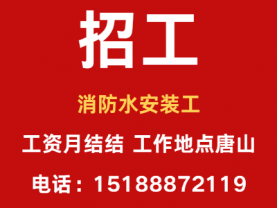 招消防水安装工,工资月结结,工作地点唐山
