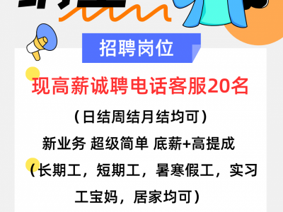 现高薪诚聘电话客服20名(日结周结月结均可)