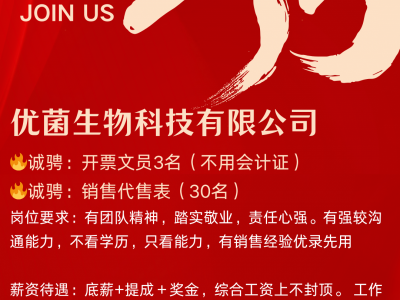 岗位要求:有团队精神,踏实敬业,责任心强。有强较沟通能力,不看学历,只看能力,有销售经验优录先用