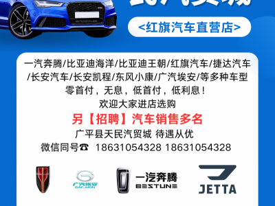 广平县天民汽贸城<红旗汽车直营店>:一汽奔腾/比亚迪海洋/比亚迪王朝/红旗汽车/捷达汽车/长安汽车/长安凯程/东风小康/广汽埃安/等多种车型