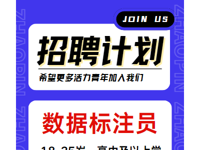 招聘数据标注员,18-35岁,高中及以上学历,计算机操作熟练;底薪➕全勤➕提成➕各种奖金福利,前期有零基础带薪培训。