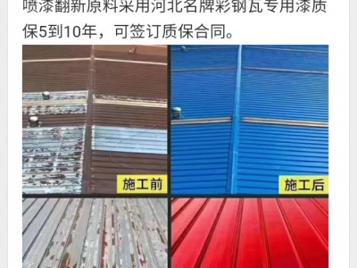 彩钢瓦除锈喷漆翻新,原料采用央视上榜品牌漆,质保5到8年可签合同叶微信同号保存电话以备后用还迎咨询。