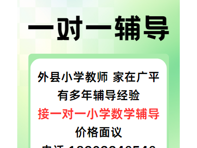 外县小学教师,家在广平,有多年辅导经验,接一对一小学数学辅导,价格面议