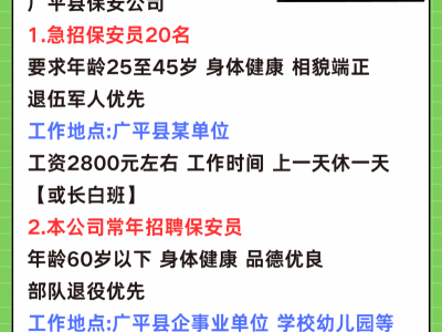 招聘 广平县保安公司