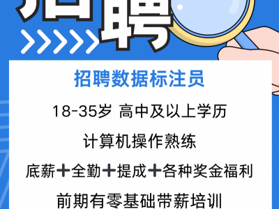 招聘数据标注员,18-35岁,高中及以上学历,计算机操作熟练;底薪➕全勤➕提成➕各种奖金福利,前期有零基础带薪培训。
