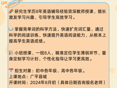 8月初上课。招初中高中各年级