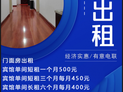 宾馆单间短租一个月500元,水、电、空调、卫浴其他设施齐全,地理位置优越停车便利。位置,广平县人民东路农业银行对过。电话: