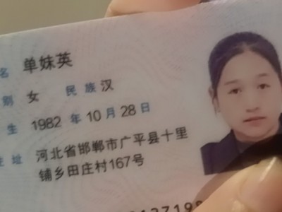 捡到广平十里铺乡田庄村身份证一张,单妹英,速与联系