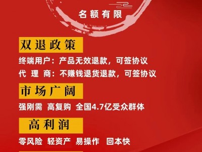 诚招各区县代理商,投资灵活,回报周期快,可试销,可签滞销退货协议,无风险合作,利润丰厚,市场刚需,潜力巨大,多年不遇的好商机,有想创业或搞副业的老板看过来