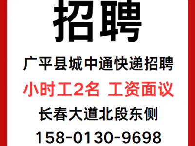广平县城中通快递招聘小时工2名、地址:长春大道北段东侧 工资面议