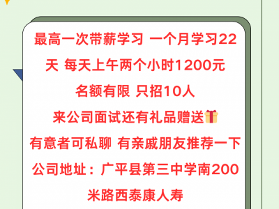 最高一次带薪学习,一个月学习22天每天上午两个小时1200 元