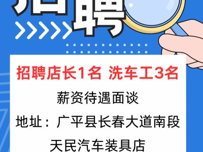 招聘店长1名、洗车工3名