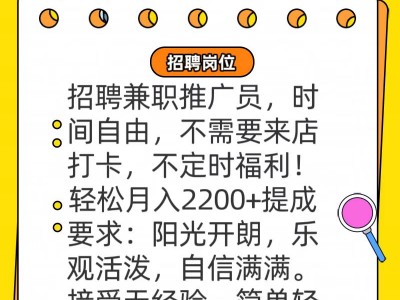 招聘兼职推广员,时间自由,不需要来店打卡,不定时福利!