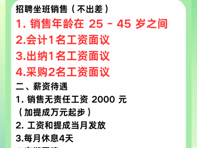 招聘坐班销售(不出差)