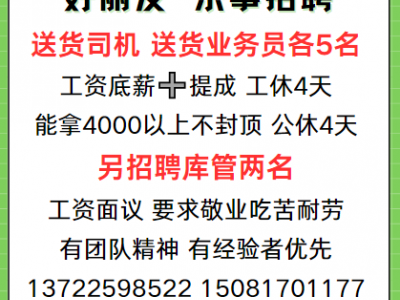 另招聘库管两名工资面议 要求敬业吃苦耐劳