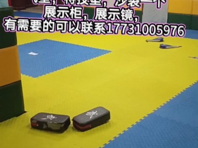 出售跆拳道垫子,沙袋一个,散打脚靶,跆拳道脚靶,压腿杠二个,展示柜,前台柜子,鞋柜,展示镜,洗手台有需要的打电话