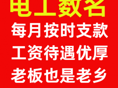 北京诚招电工数名,每月按时支款,工资待遇优厚,老板也是老乡,欢迎老乡们来电