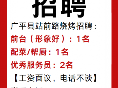 广平县站前路烧烤招聘: