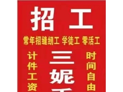 手套加工厂常年招聘缝纫工,新人有 补助,常年有活,不换活,都是眼见的活,简 单易学!工序价格高,全新缝纫机好出活!工 资计件+补助,多劳多得,上不封顶,每月15 号发工资。 地址:滨河小学新市场实验四,实验一附近 电话(微信)