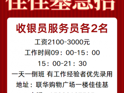 佳佳基急聘收银员服务员各2名