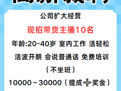 ✅ 公司扩大经营,现招带货主播10名,