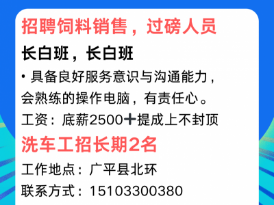 招聘饲料销售,过磅人员
