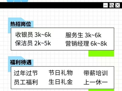 招聘:所有岗位工作时间均为:12:30—凌晨3:00,上一条休一天。一月工作半月。每月10日准时发工资,每月组织员工聚餐,每年组织团建旅游,员工每月免费唱歌福利 收银员:3000—8000/月 服务生:3000—8000/月 保洁员:2000—5000/月 地址:广平县联华购物广场四楼