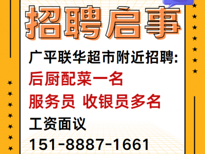 广平联华超市附近招聘:
