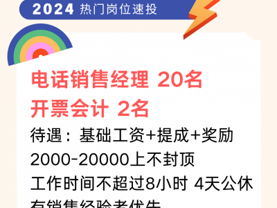 招聘:电话销售经理 20名