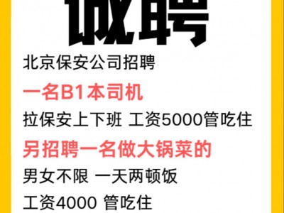 北京保安公司招聘一名B1本司机