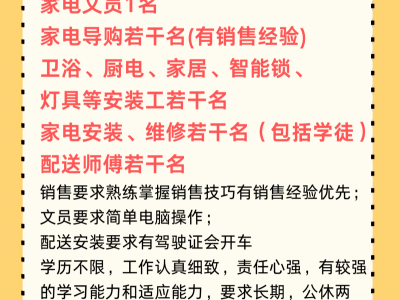 家电导购若干名(有销售经验)