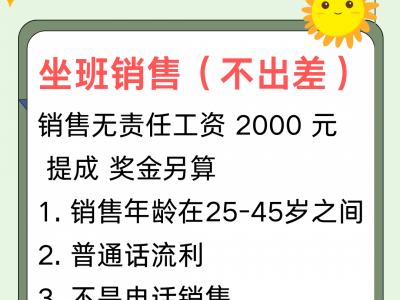 招聘坐班销售(不出差)