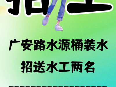 广安路水源桶装水招送水工两名,会骑三轮车,会用智能手机,多劳多得,