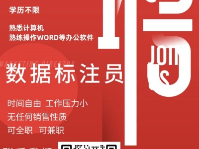 数据标注员,工作轻松,时间自由。多劳多得。 要求:熟练操作计算机,掌握办公软件操作即可。 工作内容无任何销售性质。有意者请来电咨询。