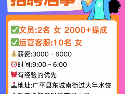 ✅文员:2名 女 2000+提成