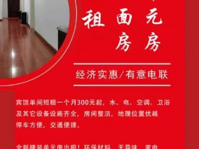 1.宾馆单间短租一个月300元起,水、电、空调、卫浴及其它设备设施齐全,房间整洁,地理位置优越停车方便,交通便捷。
