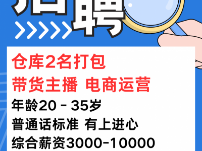 招聘:仓库2名打包 带货主播 电商运营