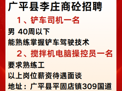 广平县李庄商砼招聘