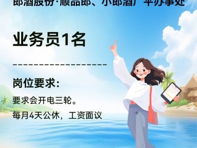 郎酒股份·顺品郎、小郎酒广平办事处现招业务员1名,要求会开电三轮。