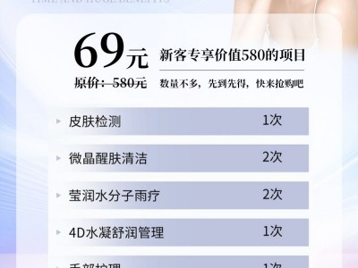 新客专享只要69元️享受价值580的项目,数量不多,先到先得,快来抢购吧!