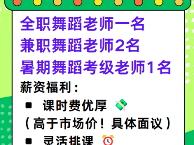 【急招:全职舞蹈老师一名,兼职舞蹈老师2名,暑期舞蹈考级老师1名】