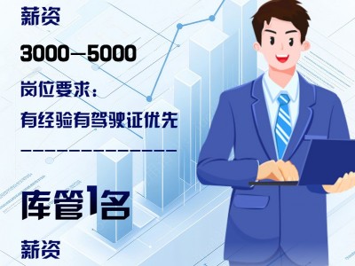 库管1名 薪资2500-3000,有经验优先。