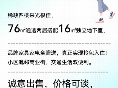 【优质房源急售】东湖小区黄金楼头房!稀缺四楼采光极佳,76㎡通透两居搭配16㎡独立地下室,品牌家具家电全赠送,真正实现拎包入住!小区毗邻商业街,交通生活双便利。诚意出售,价格可谈,详情欢迎实地考察!(非诚勿扰)