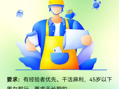店面升级开分店了,急招库管两名。送货员两名。有经验者优先。干活麻利,45岁以下。男女都行,要求干长期的,工资面议,有意者电话联系