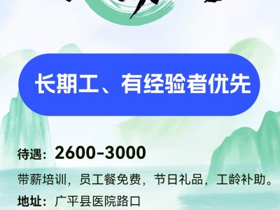 待遇:2600-3000。带薪培训,员工餐免费,节日礼品,工龄补助。
